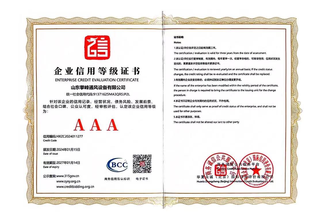 • AAA級(jí)企業(yè)等級(jí)證書(shū)